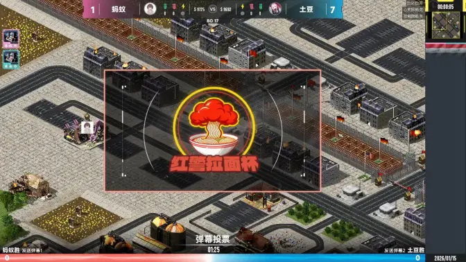 【赛事预告】2.21-红警全能王 红警V神 2026-02-21 【红警全能王】蚂蚁 VS 半城 红警V神 2026-02-21 【红警全能王】藏龙 VS 神六 红警V神 2026-02-21 【红警全能王】威龙 VS 土豆 红警V神 2026-02-21 【赛事预告】2.20-红警全能王 红警V神 2026-02-20 【红警全能王】神六 VS 灰羽 红警V神 2026-02-20 【红警全能王】土豆 VS 85 红警V神 2026-02-20 【红警全能王】威龙 VS 神六 红警V神 2026-02-20 【直播弹幕】829 假牙西 肉肉 VS V神 国米 芒果 红警V神 2026-02-19 【红警全能王】土豆 VS 神六 红警V神 2026-02-19 【直播弹幕】月亮3 829 255 VS 虎鹏飞 假牙西 85 红警V神 2026-01-18 拉面杯决赛:土豆 VS 85 (随机地图) 红警V神 2026-01-18 【直播弹幕】月亮3 829 85 VS 蚂蚁 土豆 牛弟 红警V神 2026-01-18 【直播弹幕】月亮3 829 85 VS 蚂蚁 土豆 牛弟 P2 红警V神 2026-01-18 【直播弹幕】月亮3 蚂蚁 829 VS 藏龙 喜哥 85 红警V神 2026-01-17 【直播弹幕】月亮3 829 蚂蚁 VS 藏龙 85 喜哥 P2 红警V神 2026-01-17 【拉面杯决赛】土豆 VS 85(第一轮) 红警V神 2026-01-17 【直播弹幕】蚂蚁 85 VS 土豆 藏龙(随机地图) 红警V神 2026-01-16 【拉面杯四强】土豆 VS 蚂蚁(随机地图) 红警V神 2026-01-16 【直播弹幕】蚂蚁 85 VS 土豆 藏龙 红警V神 2026-01-15 【直播弹幕】月亮3 土豆 牛弟 VS 蚂蚁 829 假牙西 P2 红警V神 2026-01-15 【直播弹幕】月亮3 牛弟 土豆 VS 829 蚂蚁 假牙西 P1 红警V神 2026-01-15 【直播弹幕】月亮3 土豆 藏龙 VS 829 85 蚂蚁 红警V神 2026-01-14 【直播弹幕】藏龙 255 85 VS 829 牛弟 蚂蚁 红警V神 2026-01-14 红警天梯偶遇藏龙,对手玩弄竟然翻车? 红警V神 2026-01-12 红警三国局面,我最弱,我赢了! 红警V神 2026-01-12 【直播弹幕】V神 VS 255 红警V神 2026-01-11 【拉面杯四强】:藏龙 VS 85 红警V神 2026-01-11 拉面杯四强预告:20:30 蚂蚁 VS 土豆 红警V神 2026-01-11 拉面杯四强预告:20:30 藏龙 VS 85 红警V神 2026-01-10 红警拉面杯四强名单与赛制介绍!!! 红警V神 2026-01-07 蚂蚁 VS 阿库拉 红警V神 2026-01-06 干人机 红警V神 2026-01-06 85 VS ac 红警V神 2026-01-05 土豆 VS 虎鹏飞 红警V神 2026-01-05